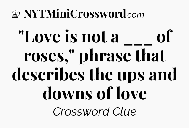 The clue “”Love is not a ___ of roses,” phrase that describes the ups and downs of love” most recently appeared in a Daily Themed Classic Crossword on July 24, 2025.
