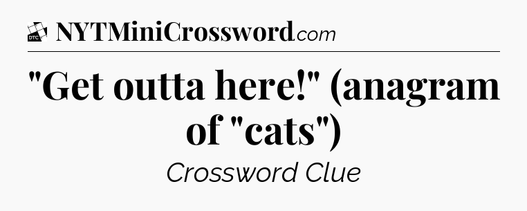The clue “”Get outta here!” (anagram of “cats”)” most recently appeared in a Daily Themed Classic Crossword on July 26, 2023.