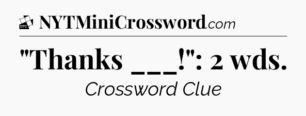 The clue “”Thanks ___!”: 2 wds” most recently appeared in a Daily Themed Classic Crossword on July 27, 2025.