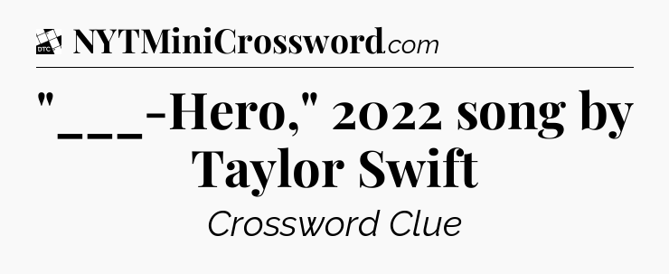The clue “”___-Hero,” 2022 song by Taylor Swift” most recently appeared in a Daily Themed Classic Crossword on July 4, 2023.