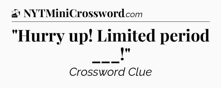 The Answer for ‘”Hurry up! Limited period ___!”‘ Crossword Clue is: