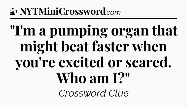 The clue “”I’m a pumping organ that might beat faster when you’re excited or scared. Who am I?”” most recently appeared in a Daily Themed Classic Crossword on July 6, 2024.