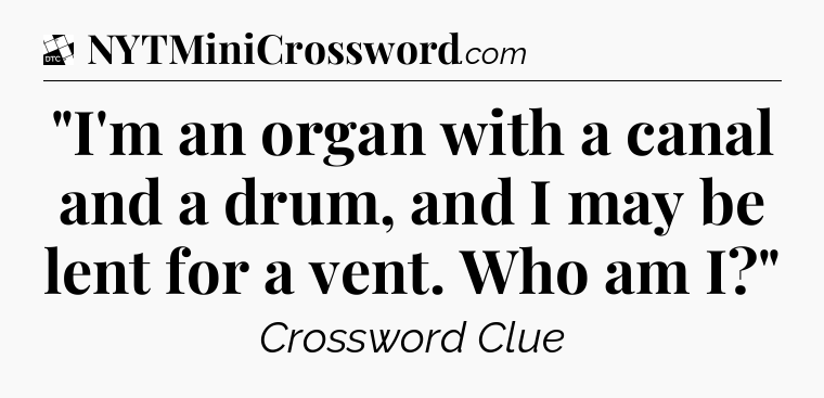 The clue “”I’m an organ with a canal and a drum, and I may be lent for a vent. Who am I?”” most recently appeared in a Daily Themed Classic Crossword on July 6, 2024.