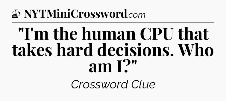 The clue “”I’m the human CPU that takes hard decisions. Who am I?”” most recently appeared in a Daily Themed Classic Crossword on July 6, 2024.