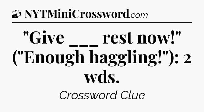 The clue “”Give ___ rest now!” (“Enough haggling!”): 2 wds” most recently appeared in a Daily Themed Classic Crossword on July 7, 2025.