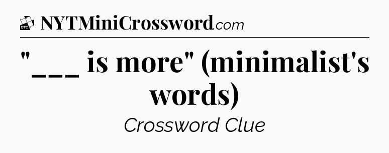 The clue “”___ is more” (minimalist’s words)” most recently appeared in a Daily Themed Classic Crossword on July 8, 2024.