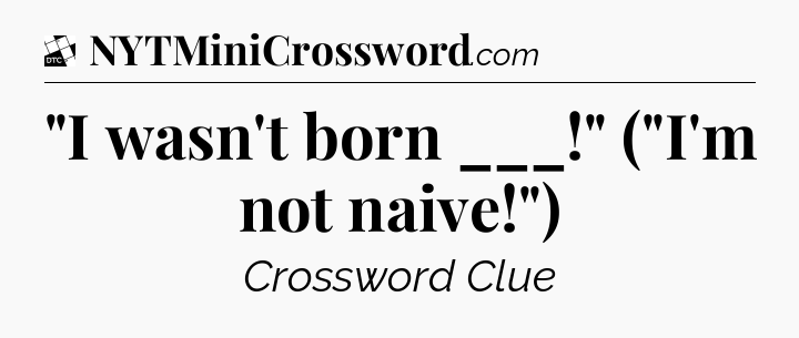 The clue “”I wasn’t born ___!” (“I’m not naive!”)” most recently appeared in a Daily Themed Classic Crossword on August 11, 2023.