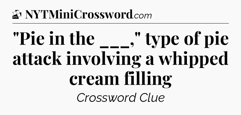 The clue “”Pie in the ___,” type of pie attack involving a whipped cream filling” most recently appeared in a Daily Themed Classic Crossword on August 11, 2025.