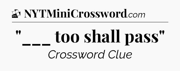 The clue “”___ too shall pass”” most recently appeared in a Daily Themed Classic Crossword on August 12, 2023.