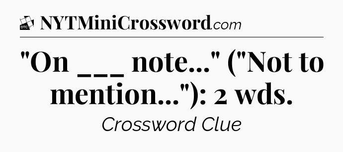 What is the answer to the clue “”On ___ note…” (“Not to mention…”): 2 wds”?