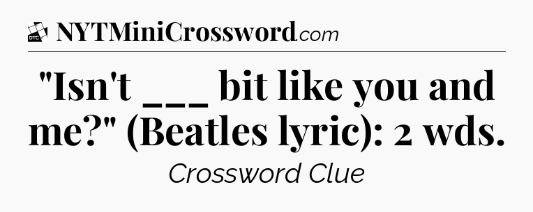 This simple page contains the answer to the crossword clue ‘“Isn’t ___ bit like you and me?” (Beatles lyric): 2 wds‘ that was published in Daily Themed Crossword August 21 2025.