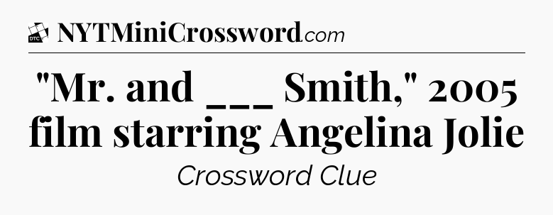 The clue “”Mr. and ___ Smith,” 2005 film starring Angelina Jolie” most recently appeared in a Daily Themed Classic Crossword on August 30, 2025.