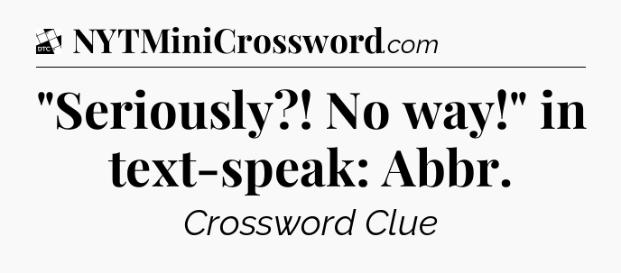 This simple page contains the answer to the crossword clue ‘“Seriously?! No way!” in text-speak: Abbr‘ that was published in Daily Themed Crossword August 31 2025.