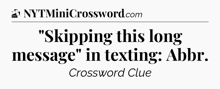 The clue “”Skipping this long message” in texting: Abbr” most recently appeared in a Daily Themed Classic Crossword on August 5, 2025.