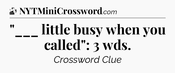 The clue “”___ little busy when you called”: 3 wds” most recently appeared in a Daily Themed Classic Crossword on August 8, 2025.