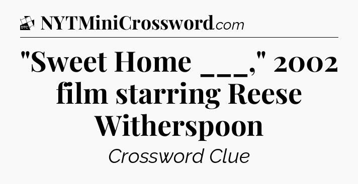 The clue “”Sweet Home ___,” 2002 film starring Reese Witherspoon” most recently appeared in a Daily Themed Classic Crossword on September 10, 2024.