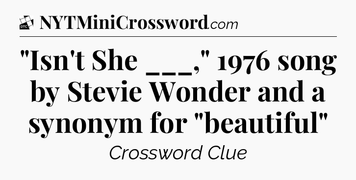 The clue “”Isn’t She ___,” 1976 song by Stevie Wonder and a synonym for “beautiful”” most recently appeared in a Daily Themed Classic Crossword on September 12, 2023.