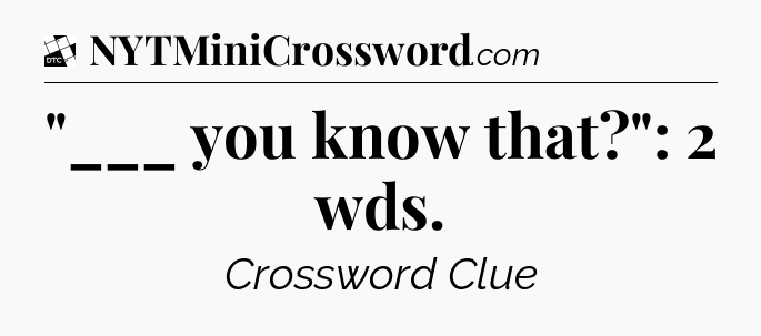 The Answer for ‘”___ you know that?”: 2 wds’ Crossword Clue is: