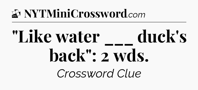 The clue “”Like water ___ duck’s back”: 2 wds” most recently appeared in a Daily Themed Classic Crossword on September 12, 2025.