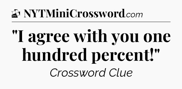 The clue “”I agree with you one hundred percent!”” most recently appeared in a Daily Themed Classic Crossword on September 13, 2024.