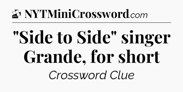 The clue “”Side to Side” singer Grande, for short” most recently appeared in a Daily Themed Classic Crossword on September 14, 2025.