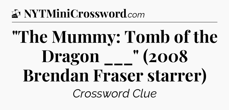 The clue “”The Mummy: Tomb of the Dragon ___” (2008 Brendan Fraser starrer)” most recently appeared in a Daily Themed Classic Crossword on September 14, 2025.