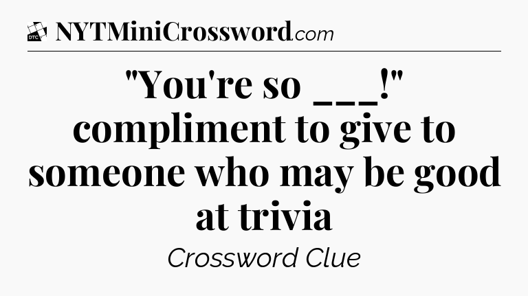 The clue “”You’re so ___!” compliment to give to someone who may be good at trivia” most recently appeared in a Daily Themed Classic Crossword on September 14, 2025.