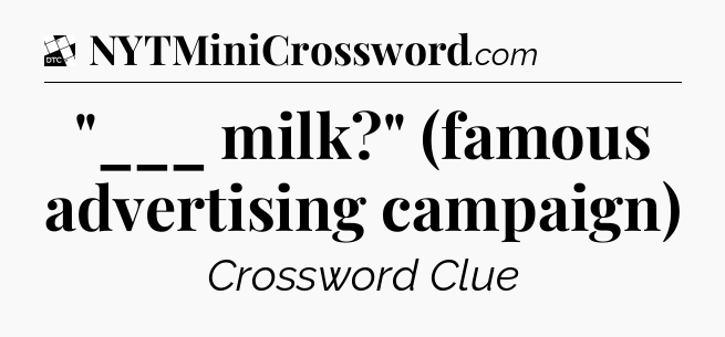 The clue “”___ milk?” (famous advertising campaign)” most recently appeared in a Daily Themed Classic Crossword on September 15, 2023.