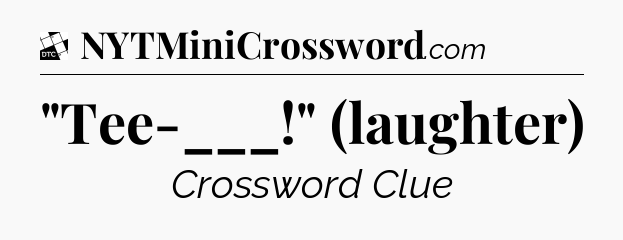 The clue “”Tee-___!” (laughter)” most recently appeared in a Daily Themed Classic Crossword on September 15, 2025.