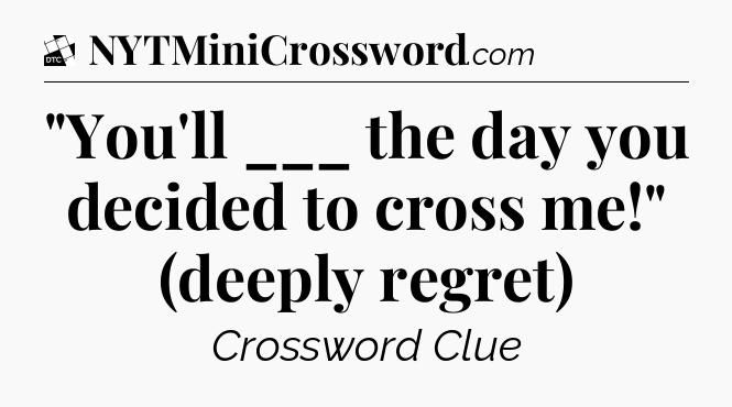 The clue “”You’ll ___ the day you decided to cross me!” (deeply regret)” most recently appeared in a Daily Themed Classic Crossword on September 20, 2025.