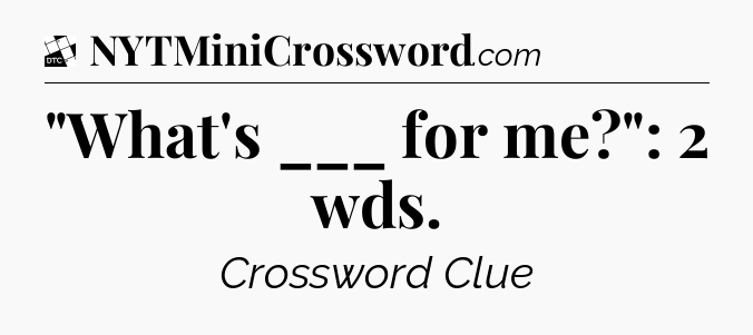 The clue “”What’s ___ for me?”: 2 wds” most recently appeared in a Daily Themed Classic Crossword on September 21, 2025.