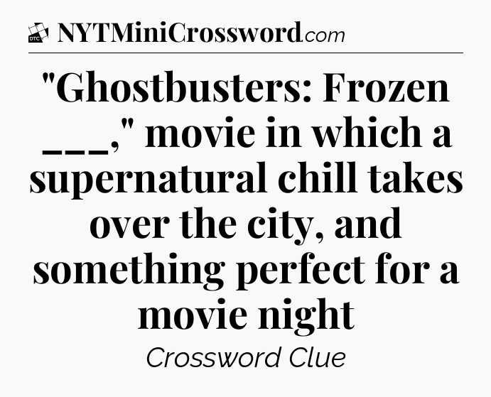 The clue “”Ghostbusters: Frozen ___,” movie in which a supernatural chill takes over the city, and something perfect for a movie night” most recently appeared in a Daily Themed Classic Crossword on September 23, 2025.