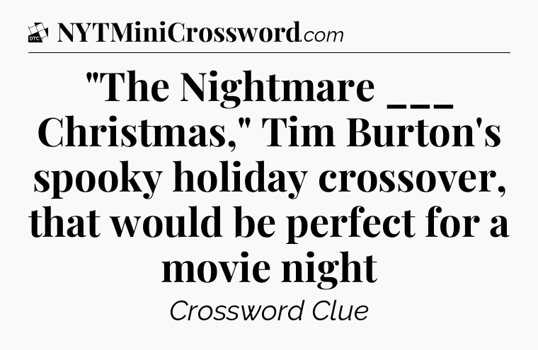 The clue “”The Nightmare ___ Christmas,” Tim Burton’s spooky holiday crossover, that would be perfect for a movie night” most recently appeared in a Daily Themed Classic Crossword on September 23, 2025.