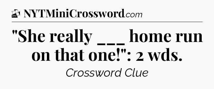 The clue “”She really ___ home run on that one!”: 2 wds” most recently appeared in a Daily Themed Classic Crossword on September 26, 2024.