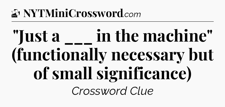 The clue “”Just a ___ in the machine” (functionally necessary but of small significance)” most recently appeared in a Daily Themed Classic Crossword on September 27, 2024.
