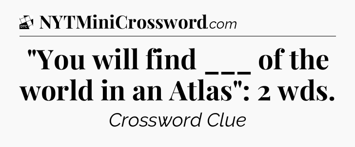 The clue “”You will find ___ of the world in an Atlas”: 2 wds” most recently appeared in a Daily Themed Classic Crossword on September 27, 2024.