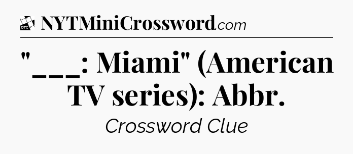 The clue “”___: Miami” (American TV series): Abbr” most recently appeared in a Daily Themed Classic Crossword on September 28, 2025.