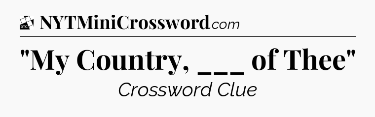 The Answer for ‘”My Country, ___ of Thee”‘ Crossword Clue is: