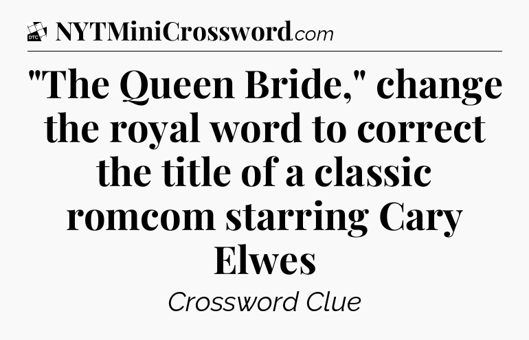 The clue “”The Queen Bride,” change the royal word to correct the title of a classic romcom starring Cary Elwes” most recently appeared in a Daily Themed Classic Crossword on September 7, 2025.