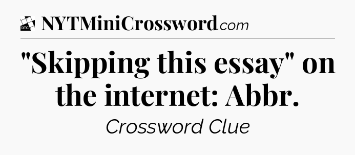 The clue “”Skipping this essay” on the internet: Abbr” most recently appeared in a Daily Themed Crossword on January 21, 2023.