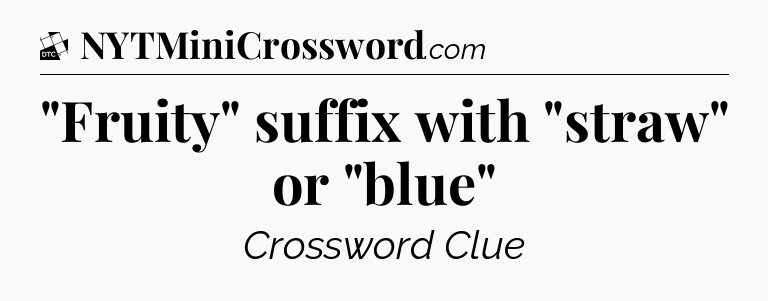 There is 1 possible answer for the crossword clue “”Fruity” suffix with “straw” or “blue””.