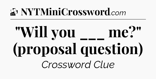 The clue “”Will you ___ me?” (proposal question)” most recently appeared in a Daily Themed Crossword on November 17, 2024.