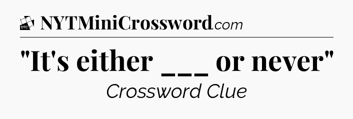 There is 1 possible answer for the crossword clue “”It’s either ___ or never””.
