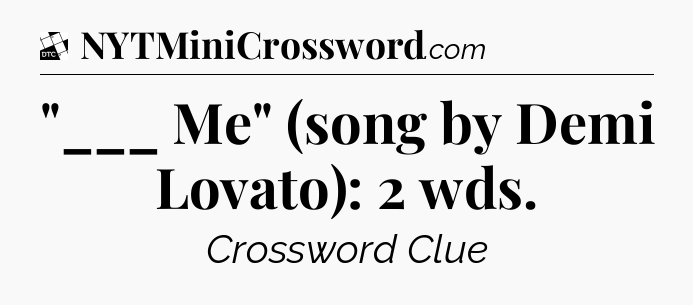 The clue “”___ Me” (song by Demi Lovato): 2 wds” most recently appeared in a Daily Themed Crossword on February 14, 2023.