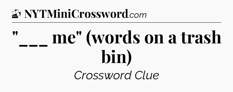 The clue “”___ me” (words on a trash bin)” most recently appeared in a Daily Themed Crossword on March 16, 2024.