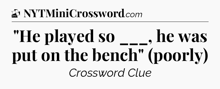 The clue “”He played so ___, he was put on the bench” (poorly)” most recently appeared in a Daily Themed Crossword on April 17, 2023.