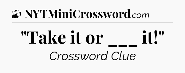 The clue “”Take it or ___ it!”” most recently appeared in a Daily Themed Crossword on May 11, 2024.