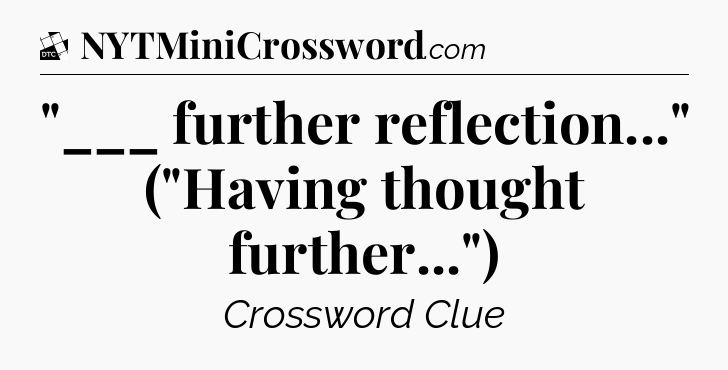 “”___ further reflection…” (“Having thought further…”)” Daily Themed Mini Crossword Clue: Frequently Asked Questions