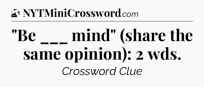 What is the answer to the clue “”Be ___ mind” (share the same opinion): 2 wds”?