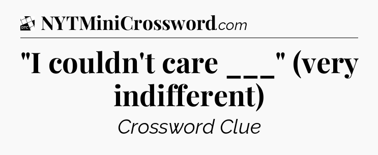 The clue “”I couldn’t care ___” (very indifferent)” most recently appeared in a Daily Themed Crossword on May 31, 2024.